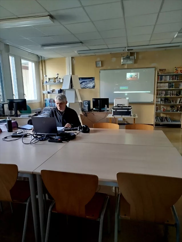Après 2 jours de tournage intenses, Guillaume passe la journée de jeudi au CDI du Lycée Gabriel Voisin et vendredi à La Pergola pour que les participants puissent voir comment se monte une scène de film à partir des rushes de tournage.