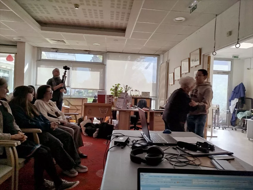 Pour la scène du bal, Guillaume propose le tournage d’une petite danse pour tester l’effet reverse. Avant ça il montre des exemples utilisés dans le film du Sessad « Ah j’vous attendais !!!»