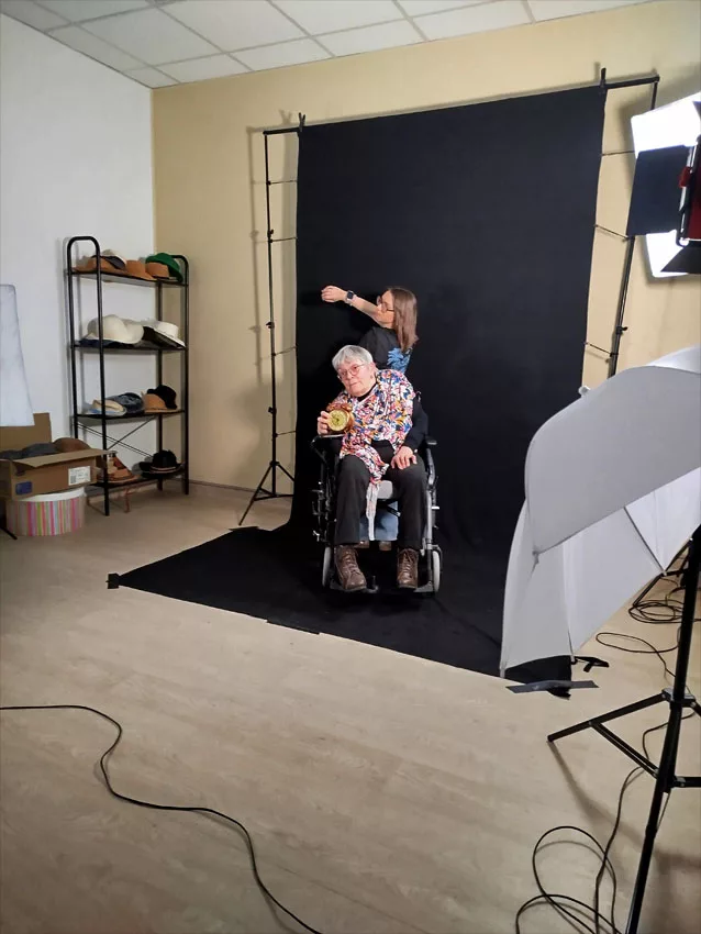Ce jeudi matin, nous arrivons à 8h00 pour installer le studio photo et faire le point avec Laetitia sur l’ordre des prises de vues selon le rythme de chaque résident.