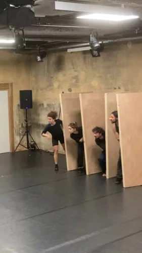 La première résidence nous a permis de faire avancer les créations vidéo, lumière et son en accord avec le travail au plateau des artistes et la seconde a permis de recentrer le travail sur les corps et l’écriture corporelle avec une résidence dédiée aux artistes au plateau.