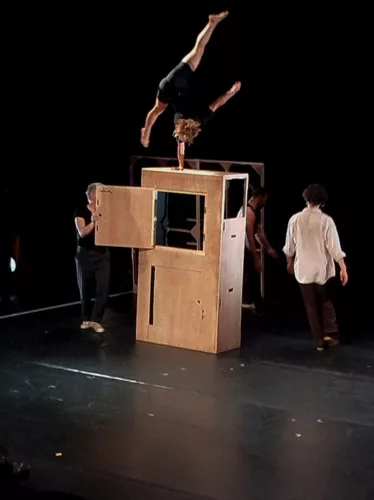 La première résidence nous a permis de faire avancer les créations vidéo, lumière et son en accord avec le travail au plateau des artistes et la seconde a permis de recentrer le travail sur les corps et l’écriture corporelle avec une résidence dédiée aux artistes au plateau.