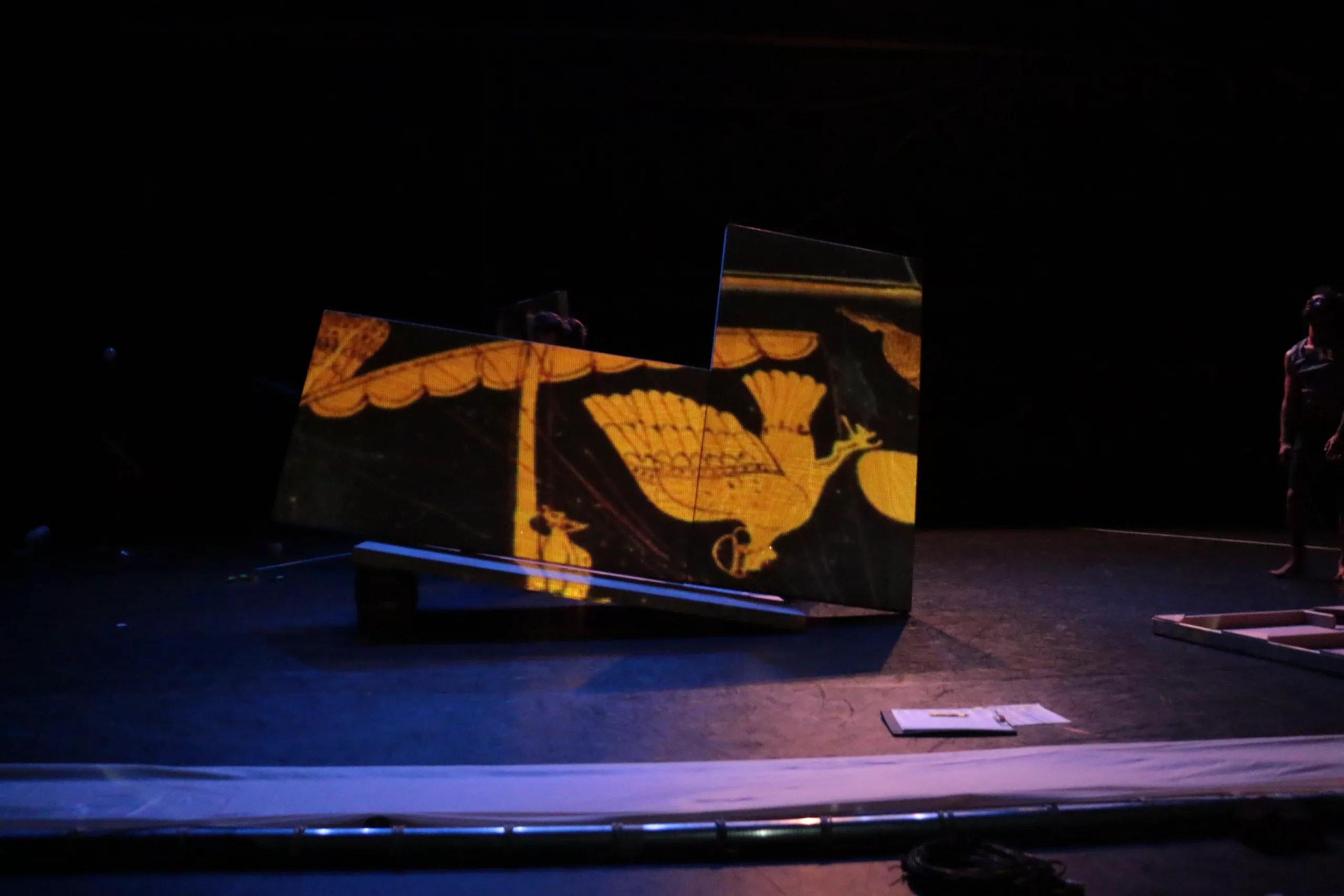 Dans notre Odyssée, il y a de très nombreux figurants, des Dieux, des monstres ! Des personnages pré filmés perçus en ombre sur écran, comme autant d’acteurs du spectacle. Ils créeront une profondeur visuelle et une diversité d’actions supplémentaires.