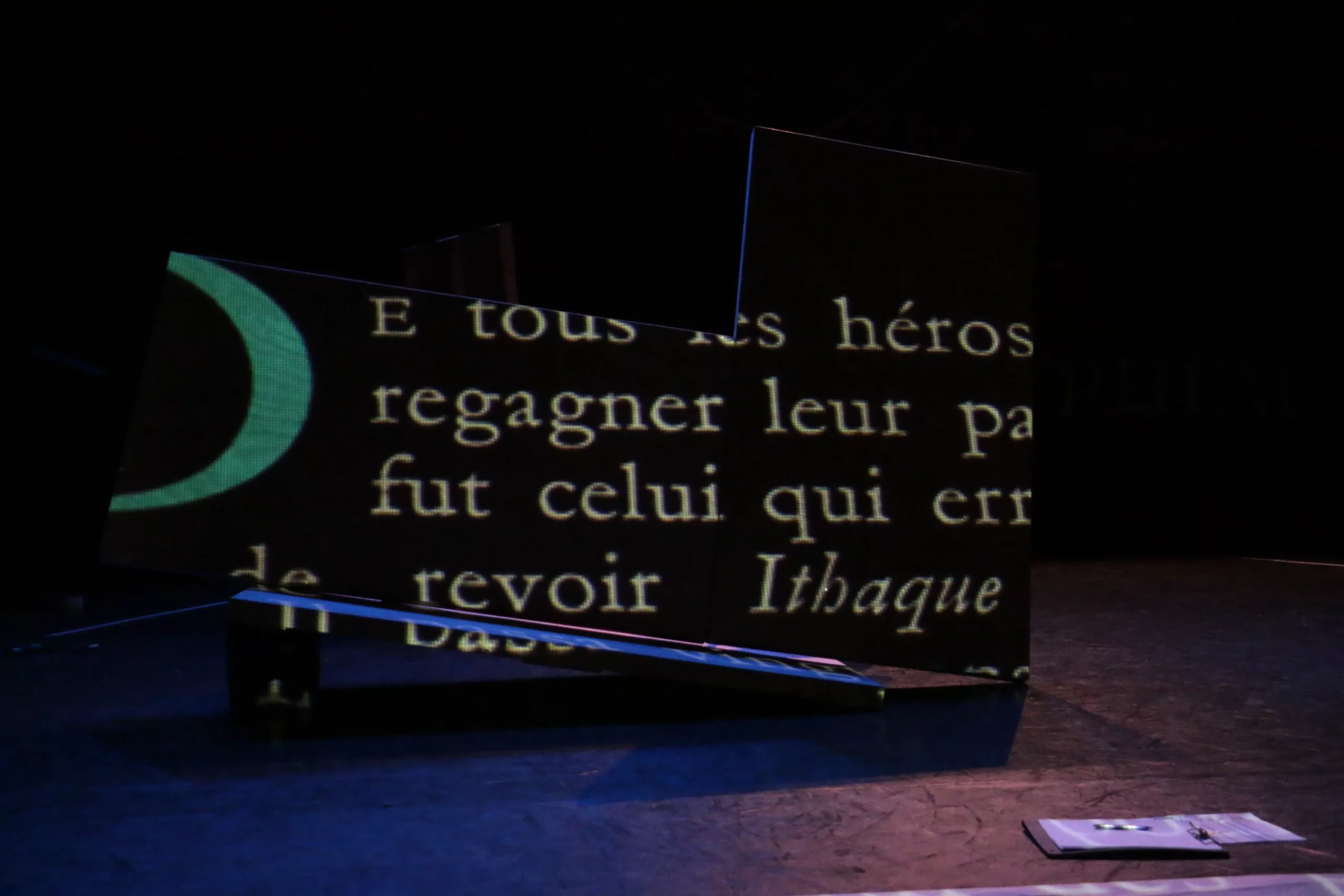 Les 24 chants d’Homère sont méthodiquement découpés en différentes phases donnant également un appui à l’articulation dramaturgie du spectacle.
